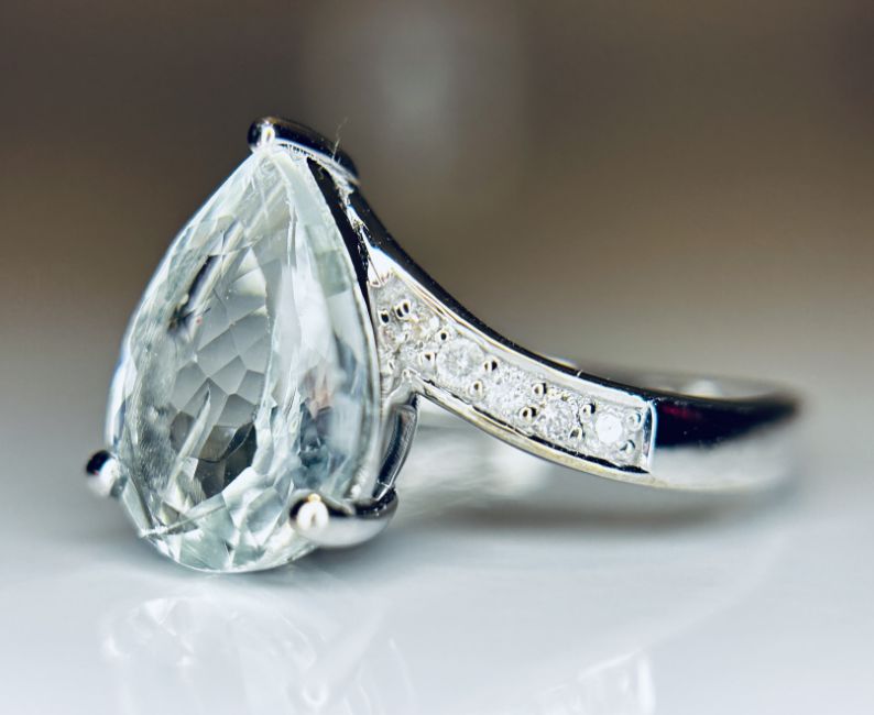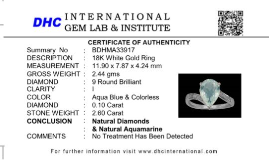 Title: Beautiful 2.60 CT Natural Aquamarine Ring With Natural Diamonds & 18k White Gold