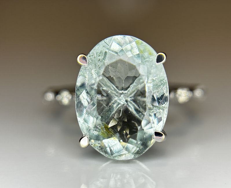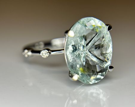 Title: Beautiful 4.70 CT Natural Aquamarine Ring With Natural Diamonds & 18k White Gold