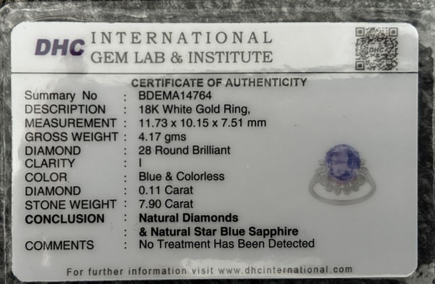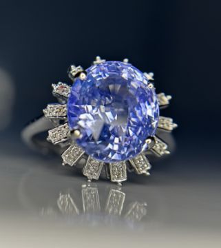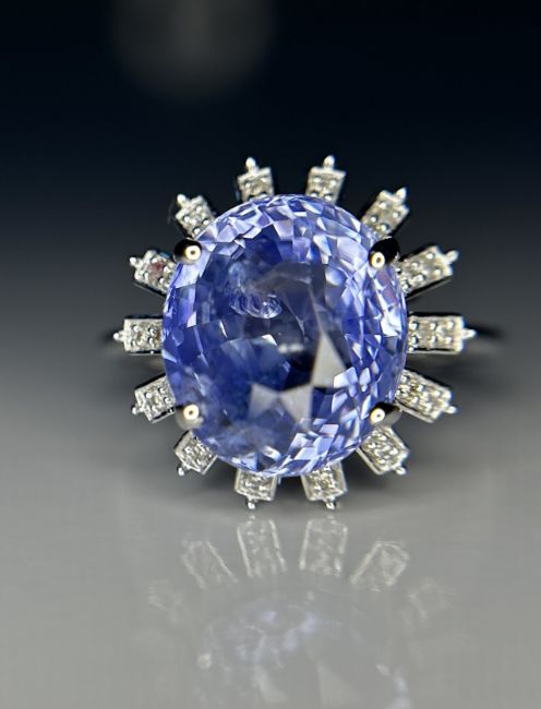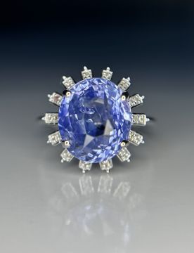 Title: Beautiful 7.90CT Unheated Ceylon Blue Sapphire With Natural Diamonds & 18k Gold