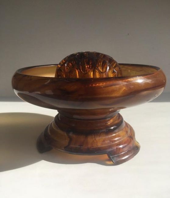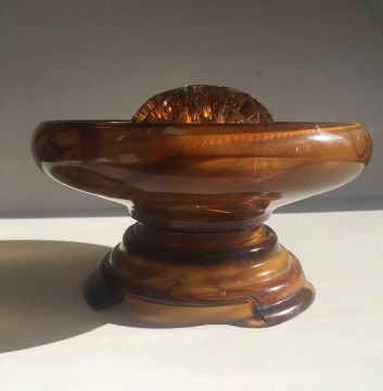 Title: ‘Brown Amber Posey Bowl Trio’ Complete Set
