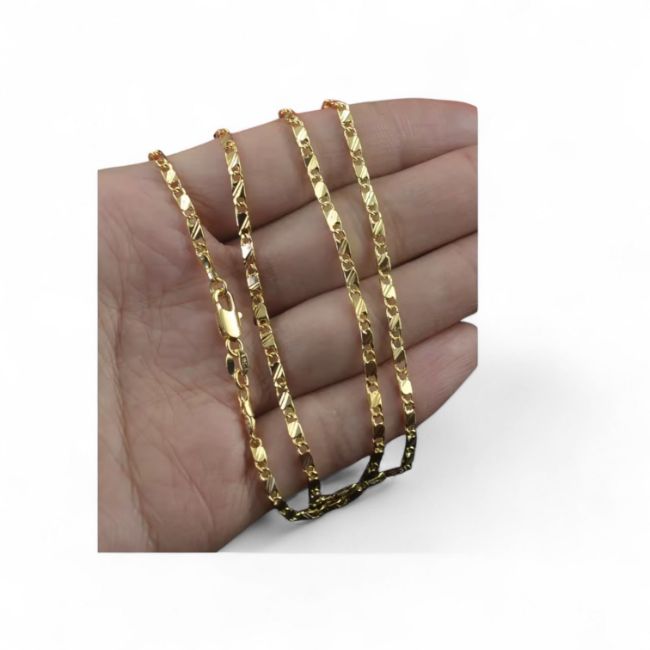 • Style: Figaro chain (classic pattern of 3 small oval links followed by 1 elongated flat link, repeating)