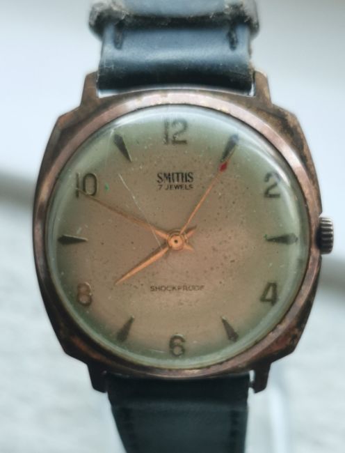 For sale is a classic vintage Smiths manual-wind wristwatch. This timepiece features a charming aged dial and a durable 7-jewel movement.