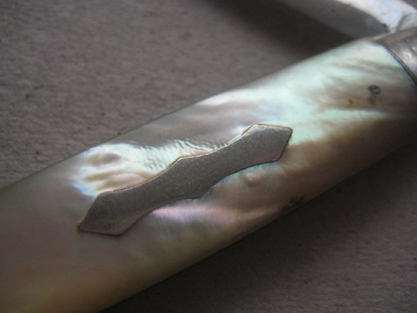 The mother of pearl handle is plain.