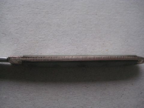 The blade snaps in and out of the handle.