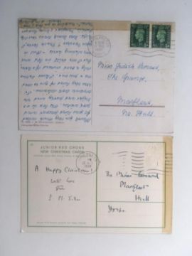 Description: Both Dedicated, Junior Red Cross Postcard and postcard, 5 1/2 x 3 1/2 inches average, King George 1/2 D stamp on postcard thin card.