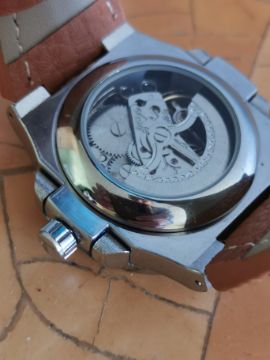 Style of a Patek Philippe Nautilus homage with an octagonal, porthole-inspired case.