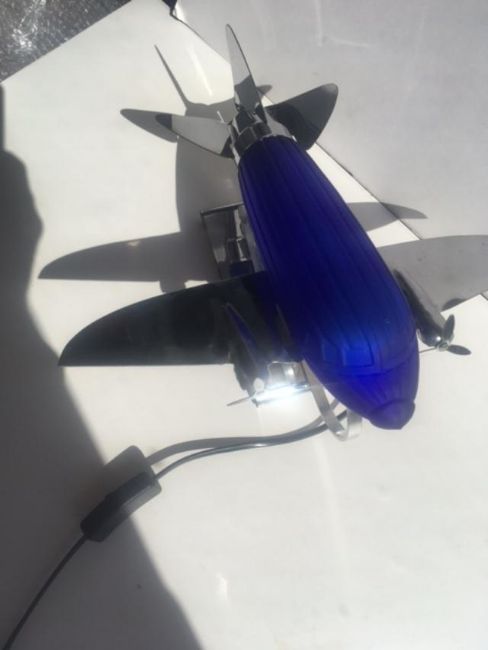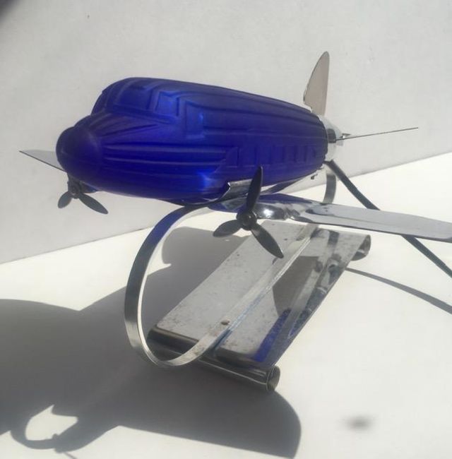 Characteristics: The Airplane Lamp by Sarsaparilla Deco Designs New York is an exquisite Art Deco style work of art designed in the 1970's. Choosing the Dakota DC3 as a source of inspiration gives this lamp a nostalgic touch, reminiscent of the Golden Era of Aviation capturing the Art Deco aesthetic. The Art Deco style was very popular in the 1920s and 1930s and is characterised by geometric shapes, symmetrical patterns and a