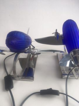 Circa 1978 RARE Imported ‘Pair of DC 3’ Desk/Table Lamps in colbalt blue glass and chrome.