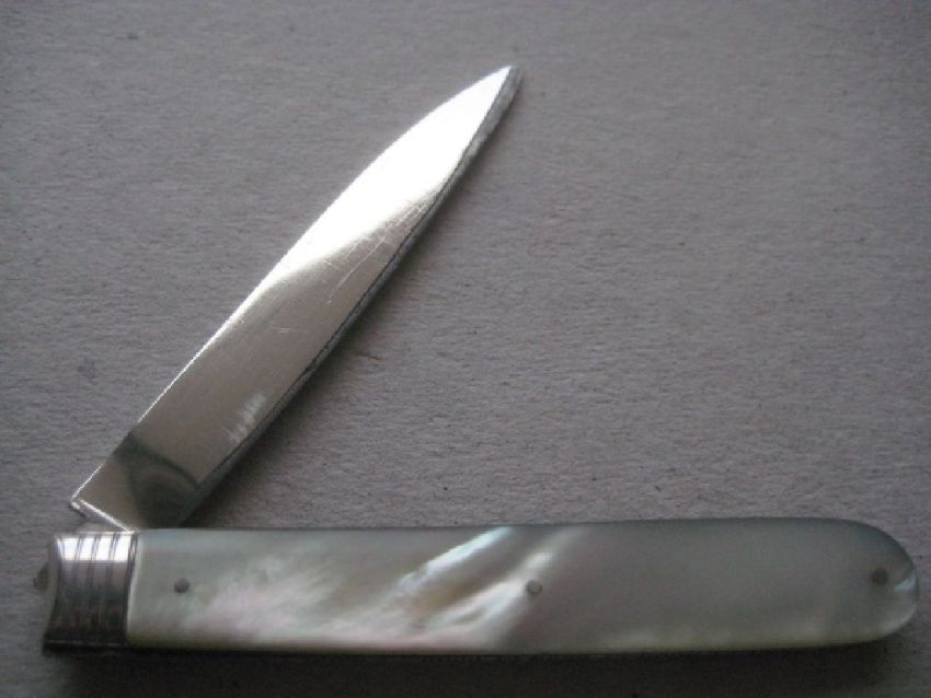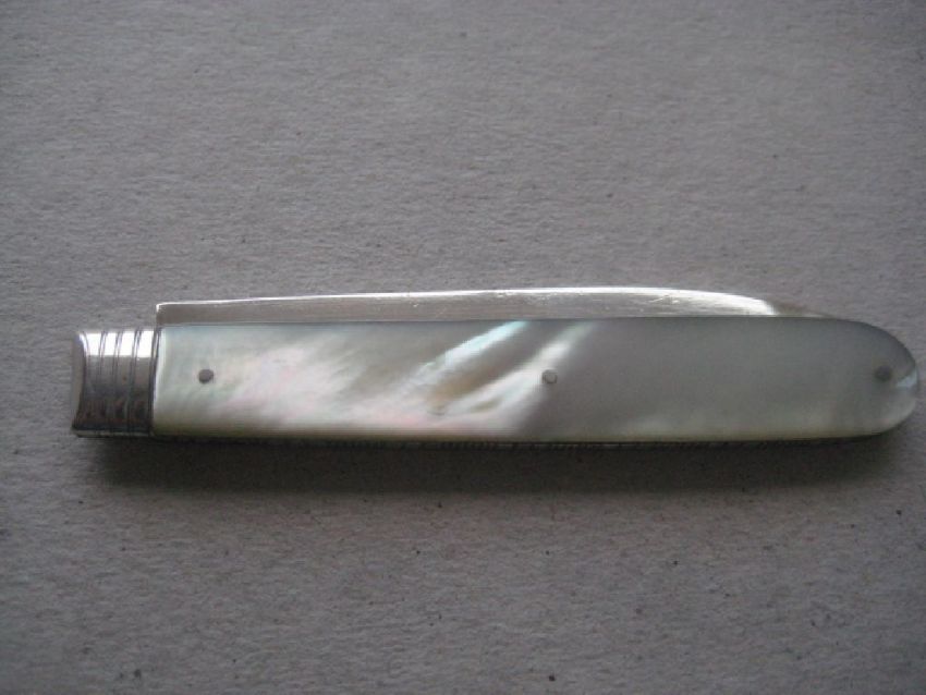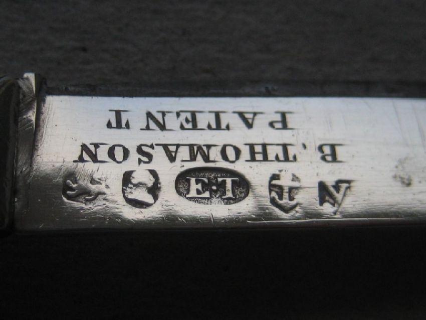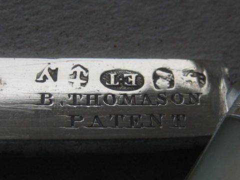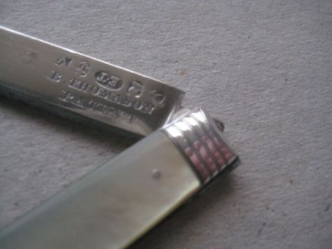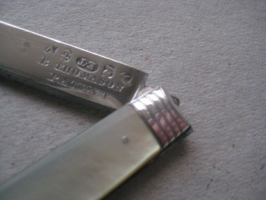 Hallmarked for Birmingham 1823 and made by Edward Thomason. The knife comes in a morocco veneered leather box.