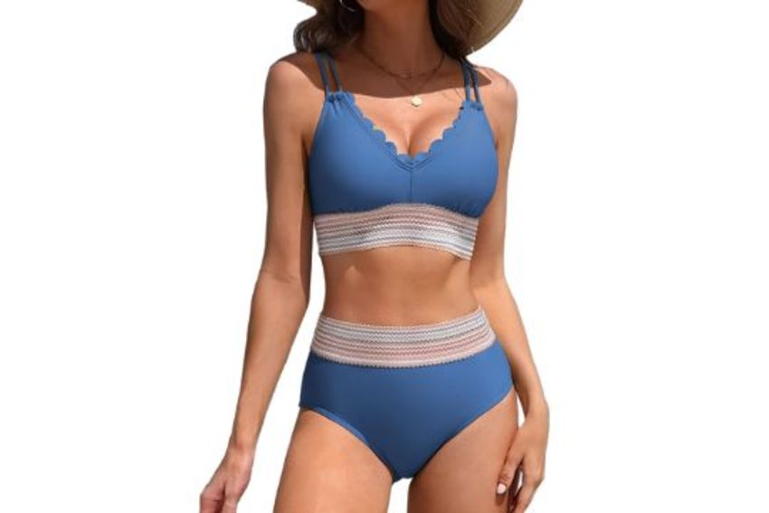 RRP £24.25 Women's Scalloped High Waisted Bikini Sets V