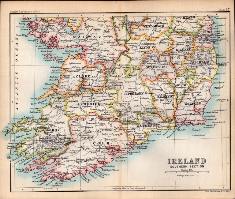 Title: Southern Ireland Area Double Sided Antique 1896 Map-17