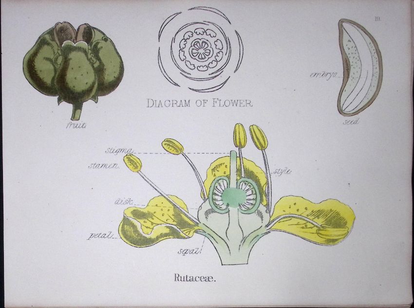 Title: Rutaceae Botanical Flower Diagram Rare Antique First Edition Illustration-19