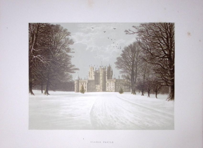 Title: Glamis Castle Scotland 160 Years-Old Gilt-Edge Coloured Antique Book Plate-1