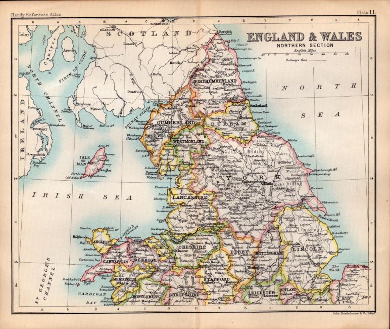 Title: England & Wales Northern Double Sided Victorian Antique 1898 Map-11