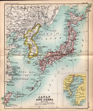 Title: Japan & Corea (Korea) Double Sided Victorian Antique 1898 Map-44