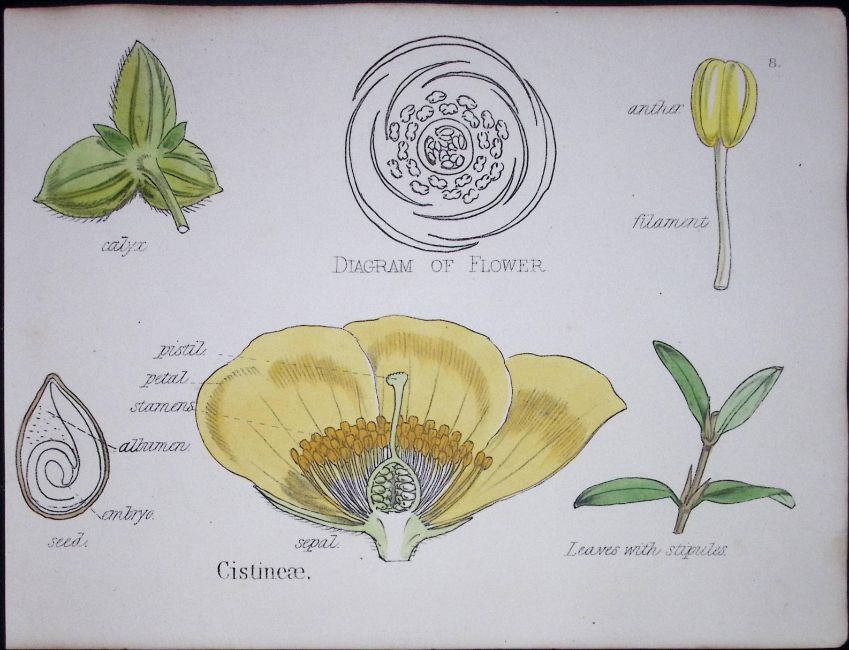 Title: Cistneae Botanical Flower Diagram Rare Antique First Edition Illustration-8