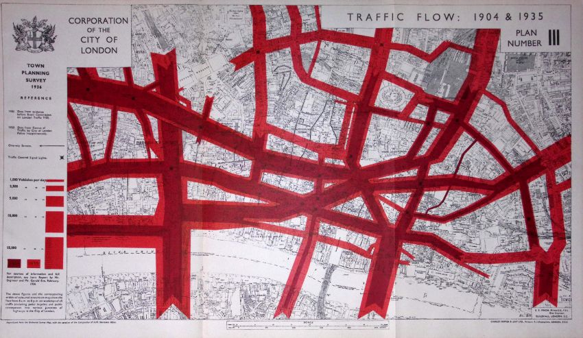 Title: City of London Traffic Flow 1905 & 1939 Coloured 1944 Map-7