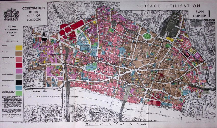 Title: City of London Post-War Surface Considerations Plan 1944 Coloured Map-5b