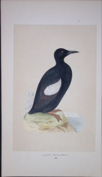 Title: Black Guillemot Bird- Rev Morris First Edition Antique Woodblock Engraving-178
