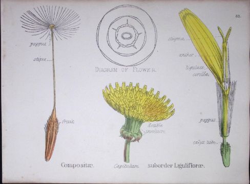 Title: Sunflower Botanical Flower Diagram Rare Antique First Edition Illustration-52