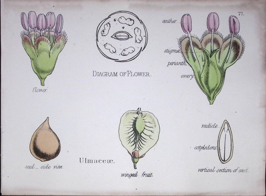 Title: Ulmaceae Botanical Flower Diagram Rare Antique First Edition Illustration-77