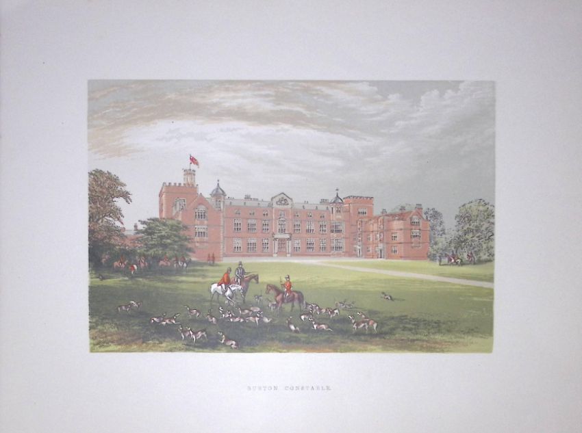 Title: Burton Constable Nr Hull Yorkshire 160 Years-Old Gilt-Edge Coloured Antique Book Plate-23