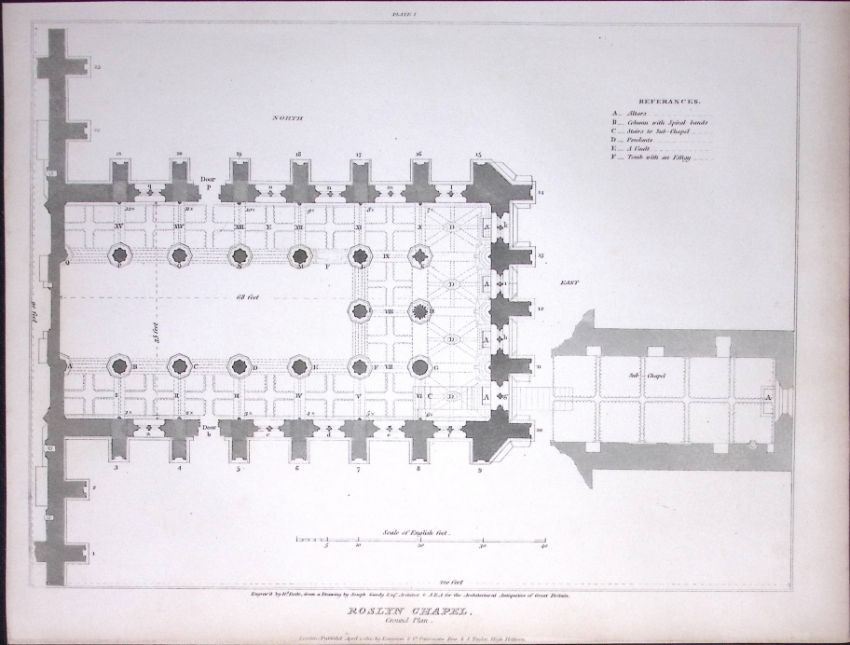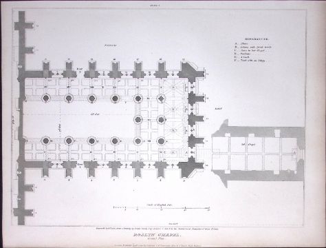 Title: Rosslyn Chapel Scotland 190 Years-Old John Britton Antique Steel Engraving-154