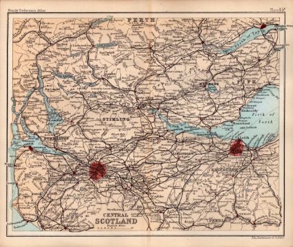 Title: Central Scotland Area Double Sided Antique 1896 Map.-15b