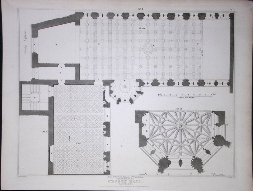 Title: Crosby Hall City of London 190 Years-Old Rare John Britton Antique Steel Engraving-125