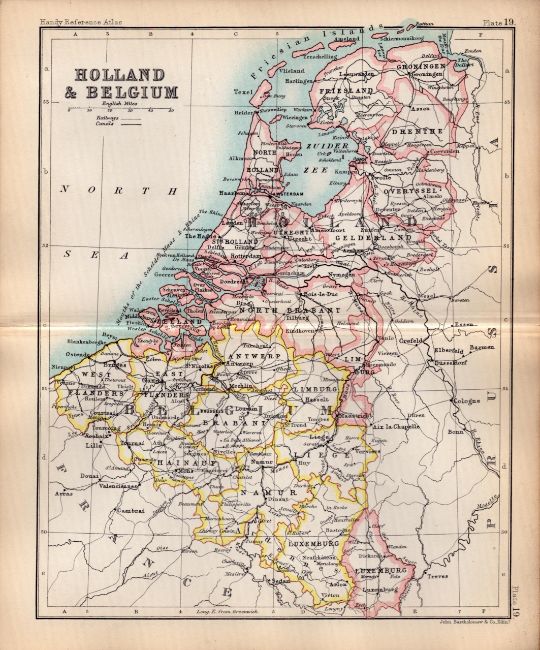 Title: Holland & Belgium Area Double Sided Antique 1896 Map-19