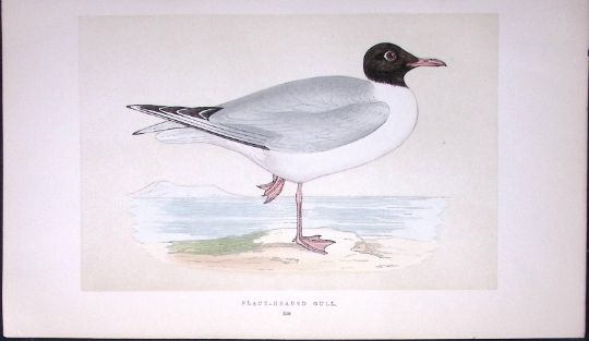 Title: Black-Headed Gull Bird- Rev Morris First Edition Antique Woodblock Engraving-203