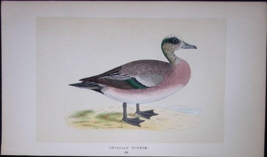 Title: American Wigeon Duck Bird- Rev Morris First Edition Antique Woodblock Engraving-92