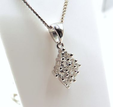 A lovely 18 inch pendant necklace in sterling silver set with 9 x 3x3mm Sparkling Itinga Petalite gemstones.