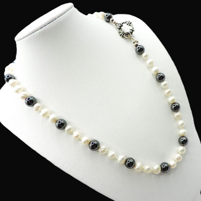 The necklace is 22 inches long and is secured with a decorative sterling silver T-Bar clasp.