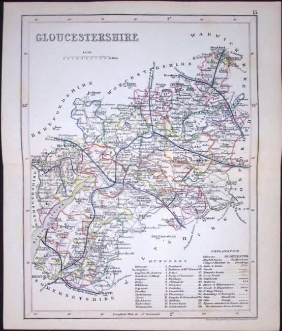 Title: Gloucestershire-Dugdale & Archer Antique 180 Years-Old Steel Engraved Map-38