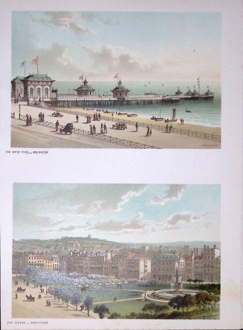 Title: Brighton The Steyne & The West Pier Victorian Antique Double Print-26