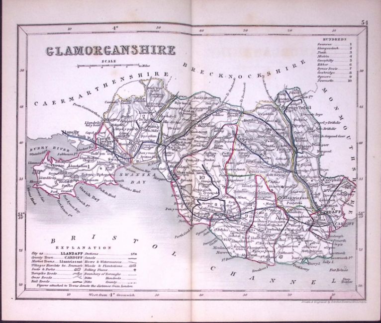 Title: Glamorganshire Wales-Dugdale & Archer Antique 180 Years-Old Steel Engraved Map-51