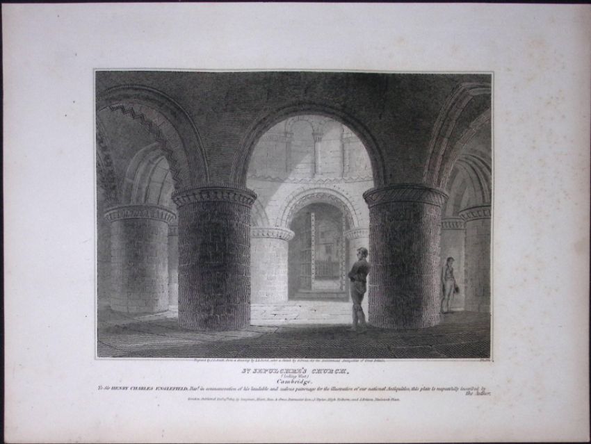 Title: Holy Sepulchre Cambridge Rare John Britton 191 Years-Old Antique Steel Engraving-17