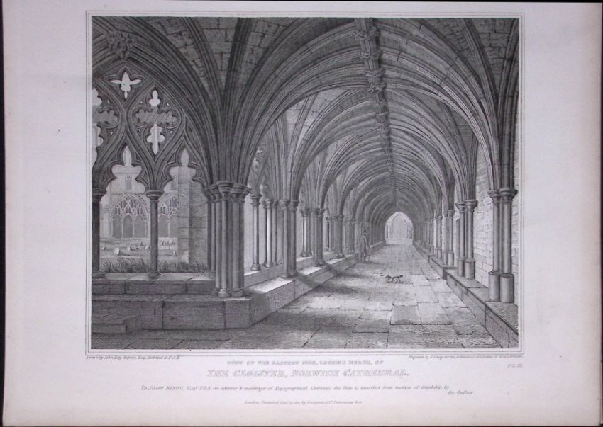 Title: Norwich Cathedral 190 Years-Old John Britton Antique Steel Engraving-179