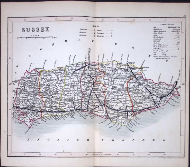Title: Sussex-Dugdale & Archer Antique 180 Years-Old Steel Engraved Map-13