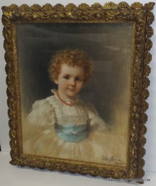Title: Antique 1897 Pastel Portrait of a Child by Léon Spinick