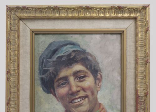 A finely painted portrait of a smiling Neapolitan youth, executed in oil on canvas and dating to the 1920s or early 1930s.