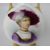 The vase stands on four moulded gilt feet with twin angular handles and a gilt rim. The front features a finely executed portrait of a lady in a feathered hat and purple gown, signed Baston to the lower right.