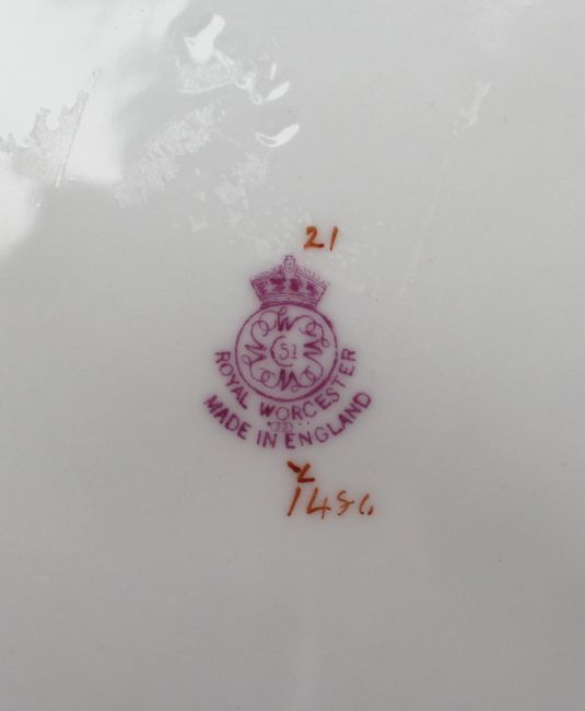 The reverse bears the puce Royal Worcester backstamp with date code for 1935, and hand-painted pattern number 1456.