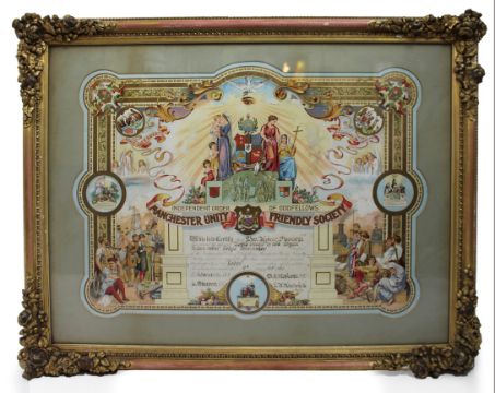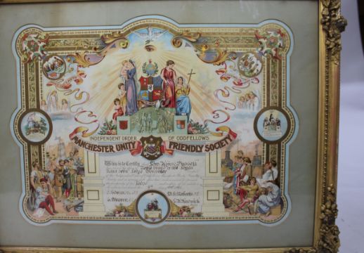 Description: Edwardian Oddfellows Manchester Unity Friendly Society Certificate – Worcester – 1905