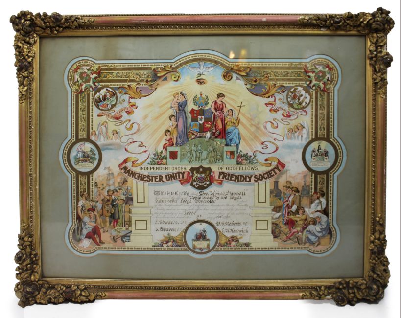 Title: Edwardian Oddfellows Manchester Unity Friendly Society Certificate – Worcester – 1905