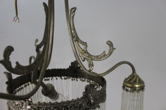 Title: French Silver Metal & Crystal Chandelier