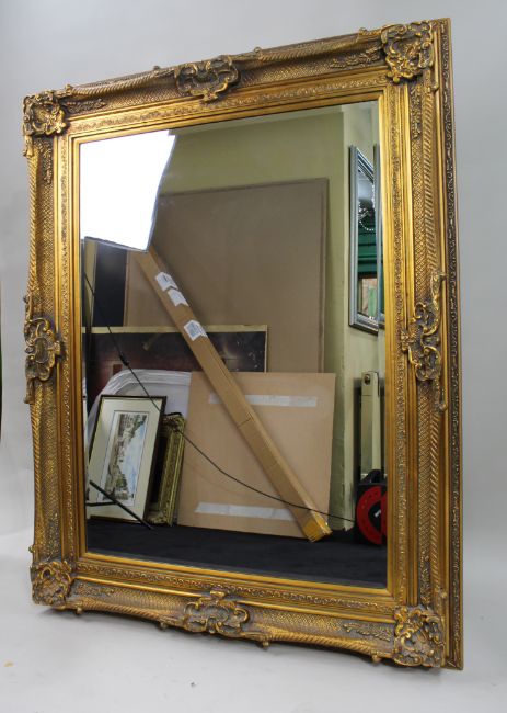 Description: Large Ornate Gilt Bevelled Mirror – 4 x 5 ft
