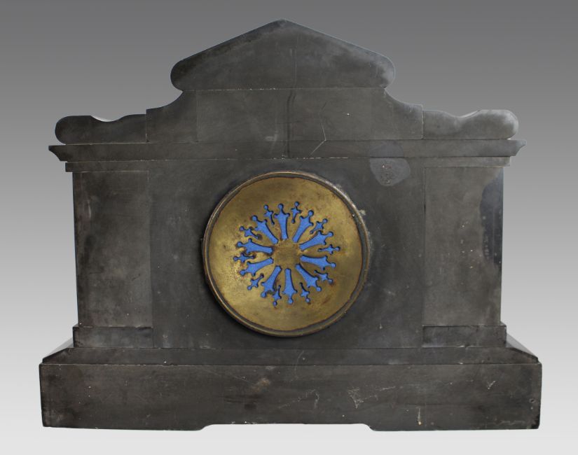 Title: Victorian Black Marble Mantel Clock with Rouge Marble Columns c.1860