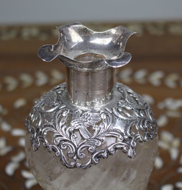 Title: Antique Silver Mounted Crystal Decanter
